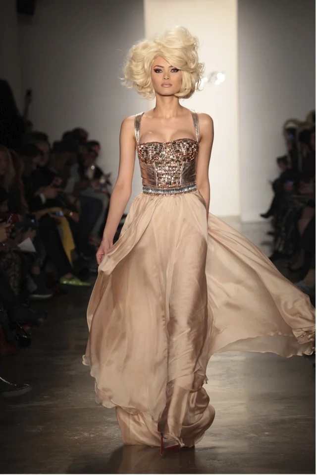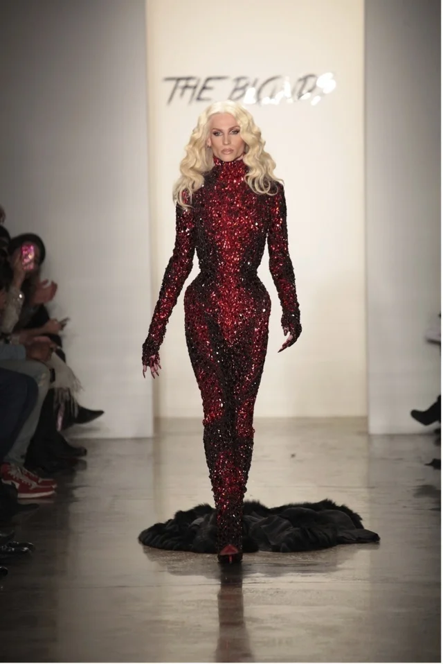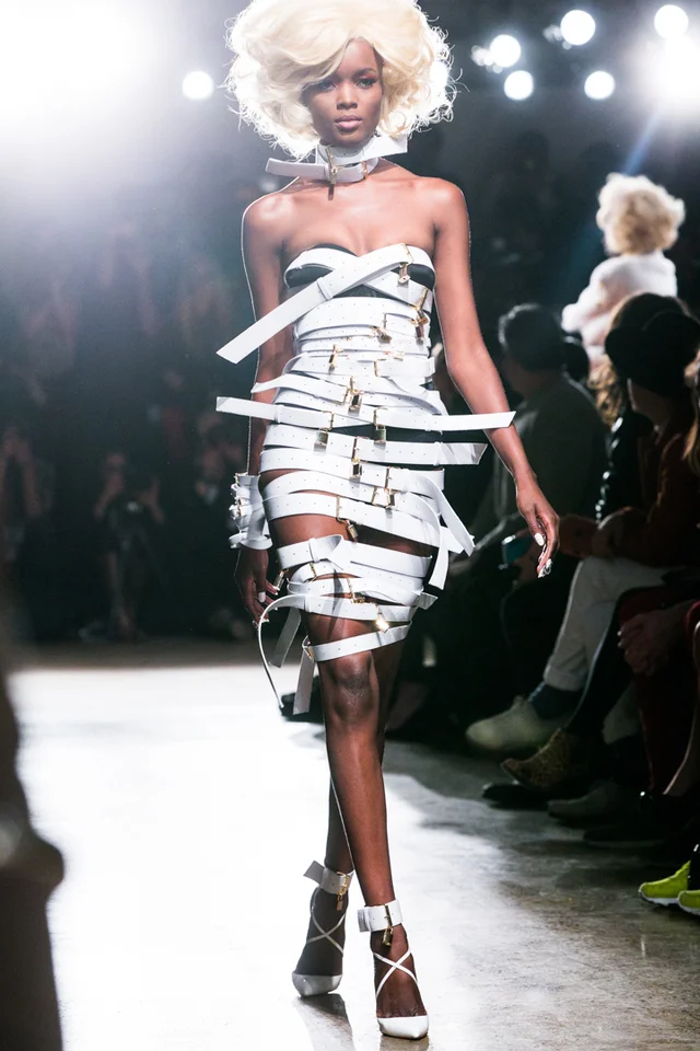 For this collection David and Phillipe reached into the macabre minds of classic Hollywood Horror films. The references to Hitchcock and Kubrick were evident and perfectly executed across the board. The collection included such wardrobe staples as, a wiggle dress made of belts, a white fur straight jacket and a rhinestone encrusted bodysuit. This season I assisted in developing embellishment layouts, fittings and constructing foundation garments.